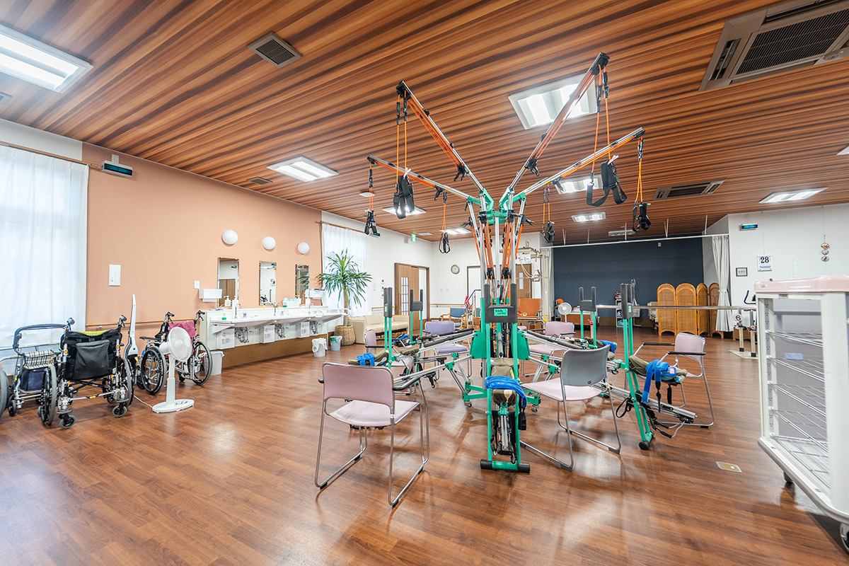 ボディスパイダーをはじめとする多彩なリハビリ機器を完備し、充実した機能訓練を行っています。