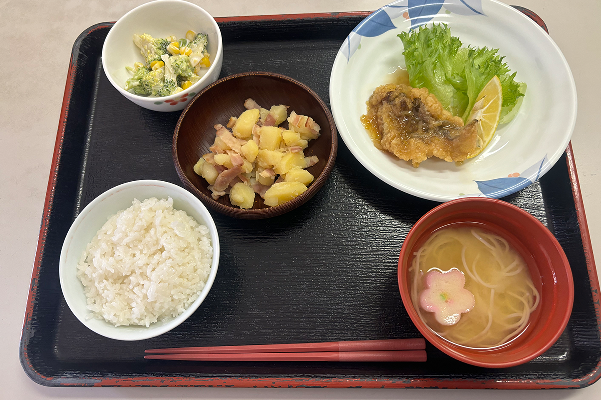 当施設では、専任の栄養士が献立を作成し、毎日の健康を支える栄養バランスの取れたお食事を提供しています。旬の食材を問い入れながら、味・彩り・食べやすさにもこだわり、楽しみながら召し上がっていただけるよう工夫しています。