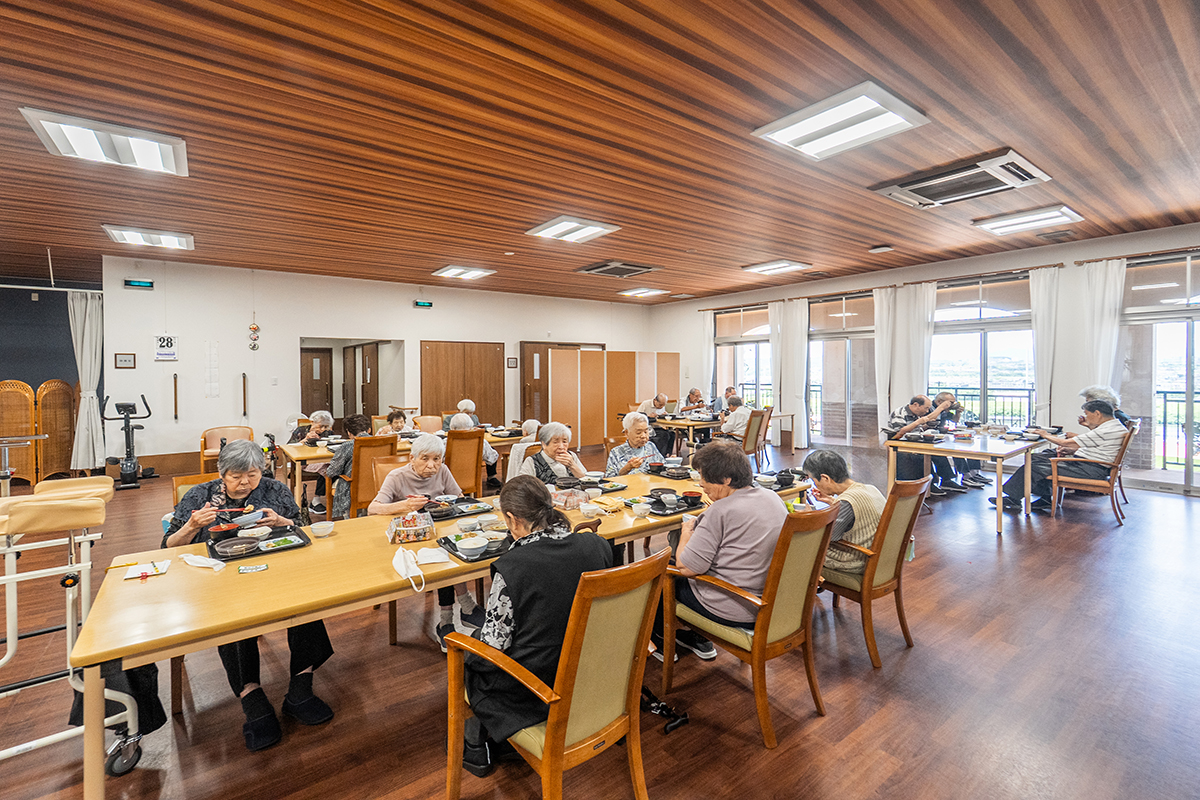 雄大な大野川の景色を眺め、自宅ではない特別な空間提供したいというコンセプトのもと設計されたデイサービス。