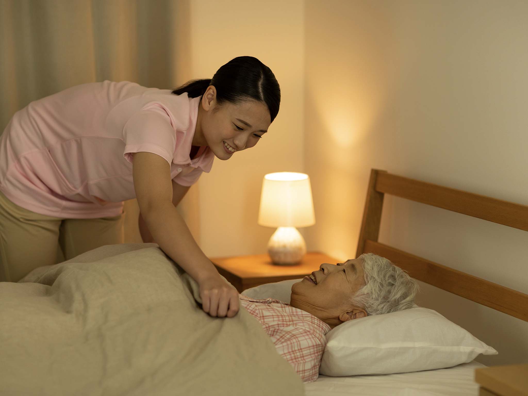 夜間の不安を軽減するコール対応夜間のトイレ介助、呼吸苦・発熱、転倒など、“困ったときはすぐにつながる”安心に繋がります。
