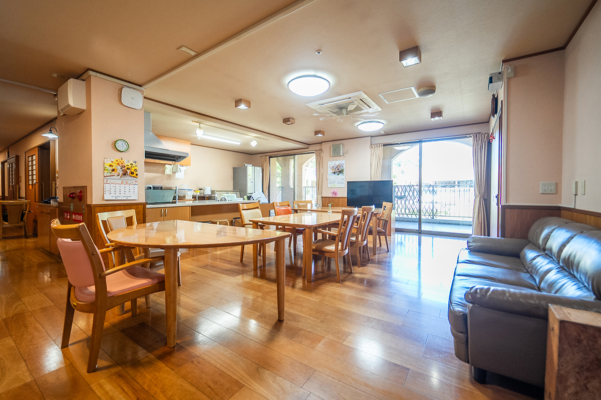 短期間でも安心して過ごせる、家庭的で温かい環境を備えたショートステイです。プライバシーが守られた居室や他ご利用者さまと過ごせる広々としたリビング。ご利用者さまもご家族も安心して笑顔の時間をお過ごしいただけます。