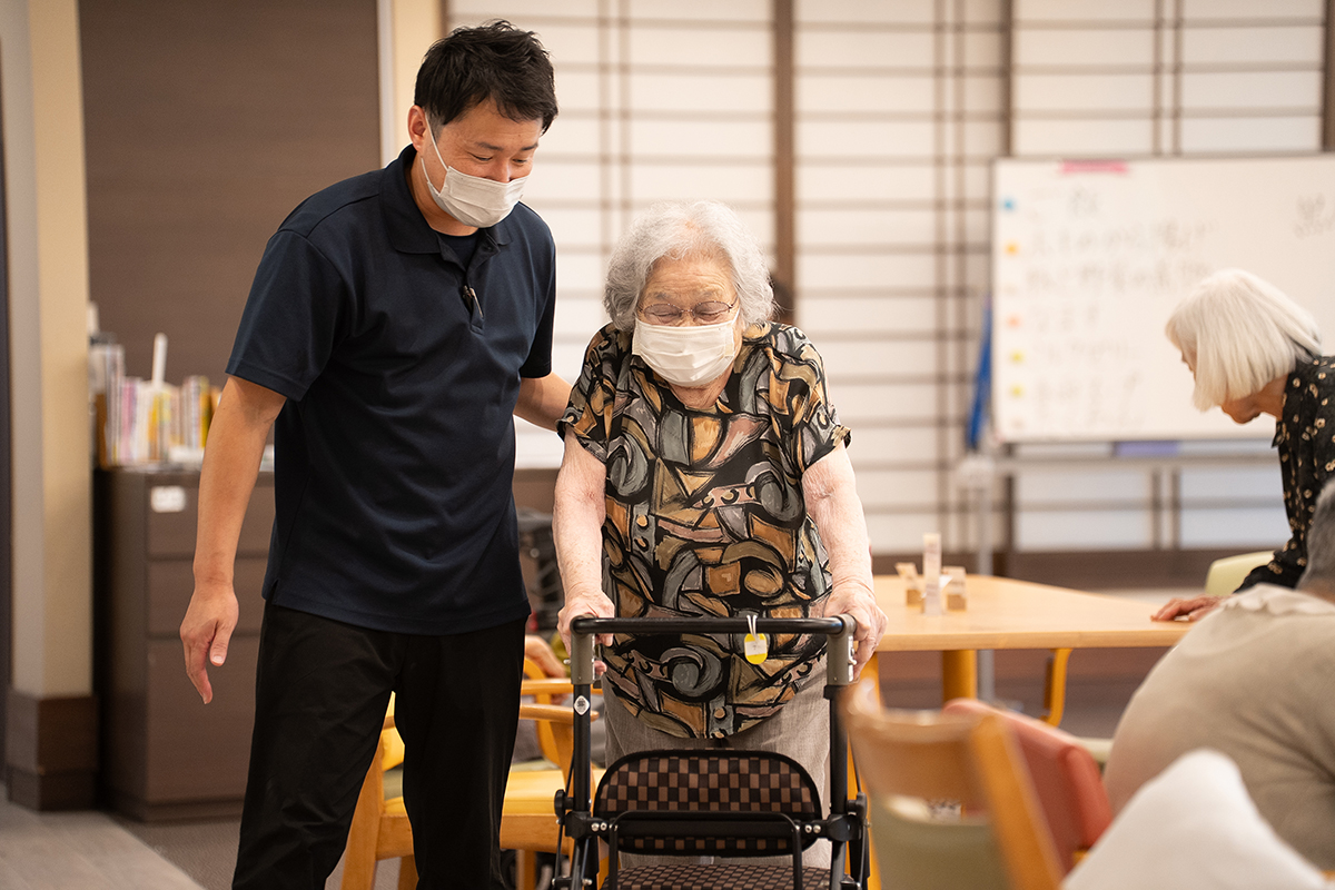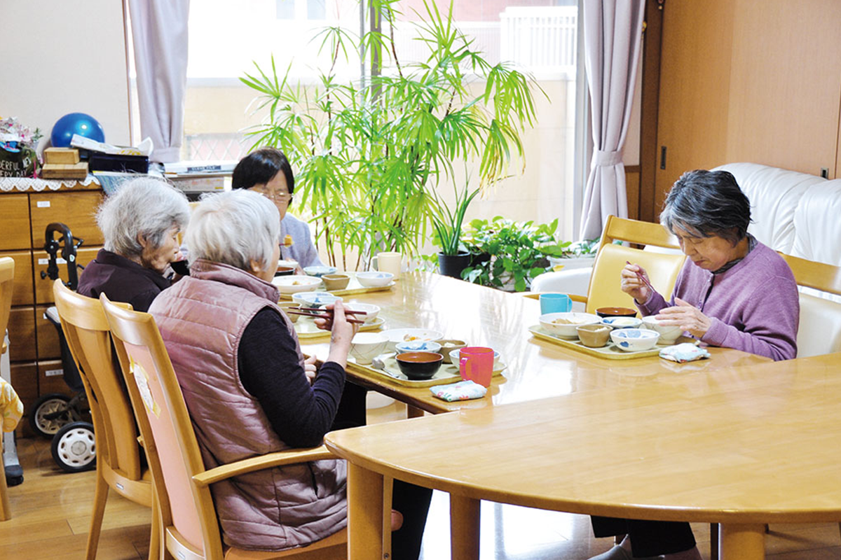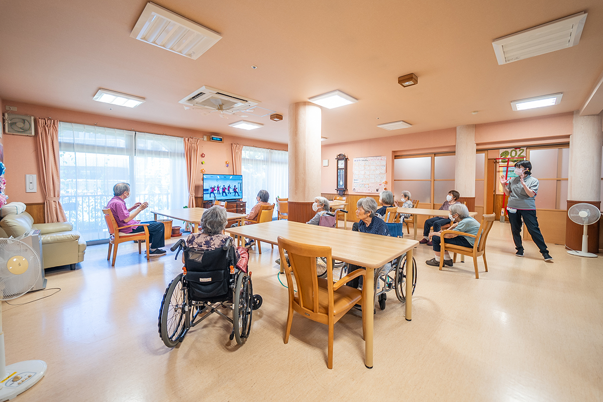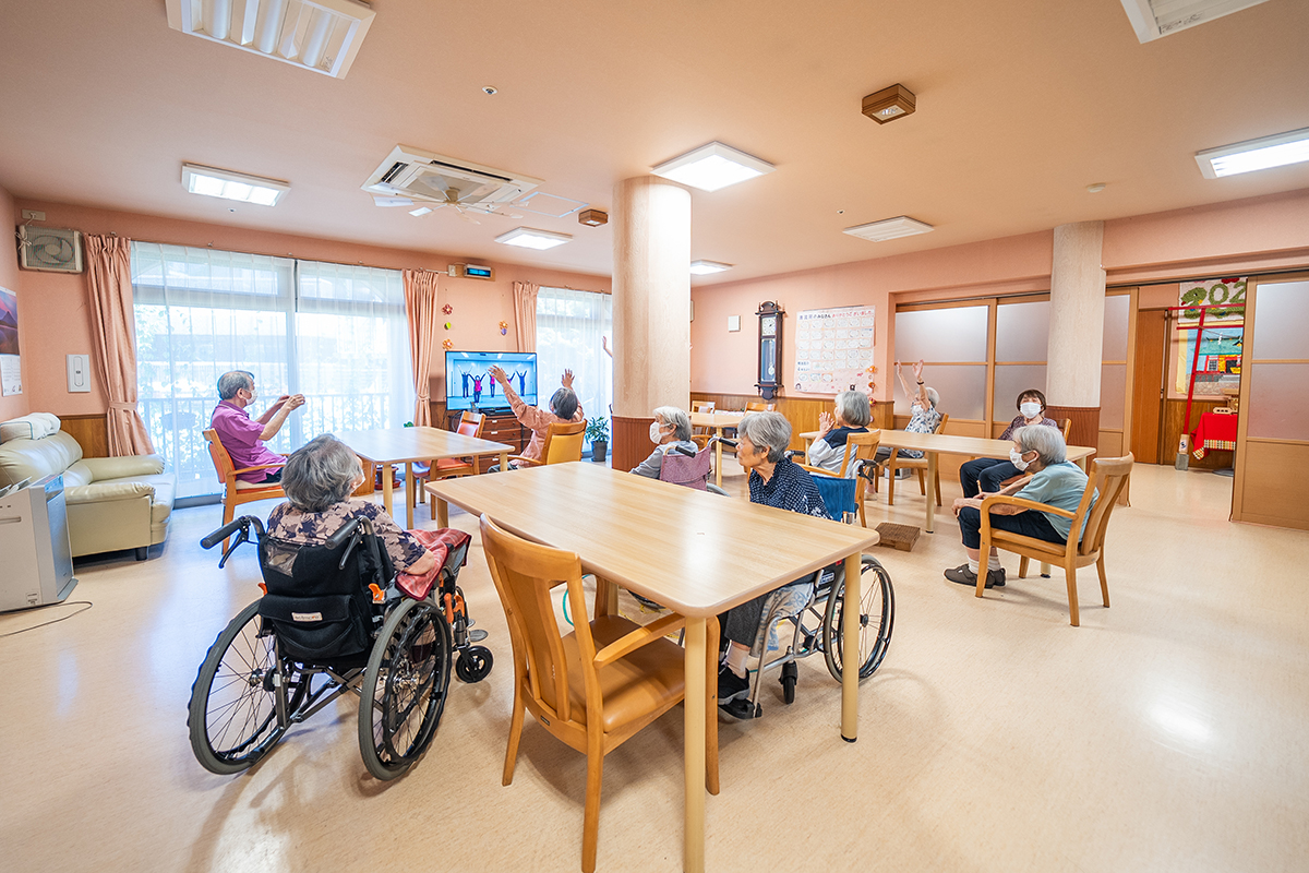 施設での食事や入浴、体操や趣味活動など、日中の生活のサポートを行います。少人数制なので、スタッフがご利用者さま一人ひとりの変化や希望に気づきやすく、安心して過ごせます。