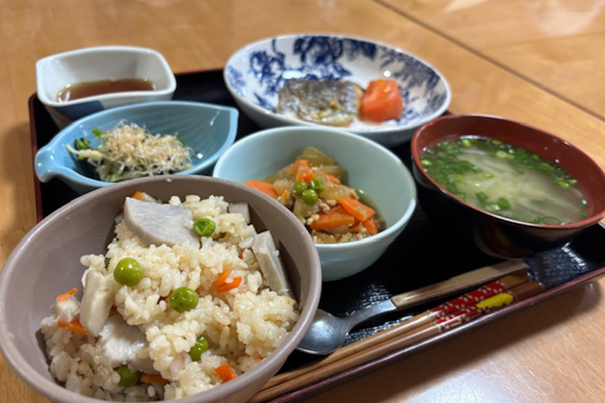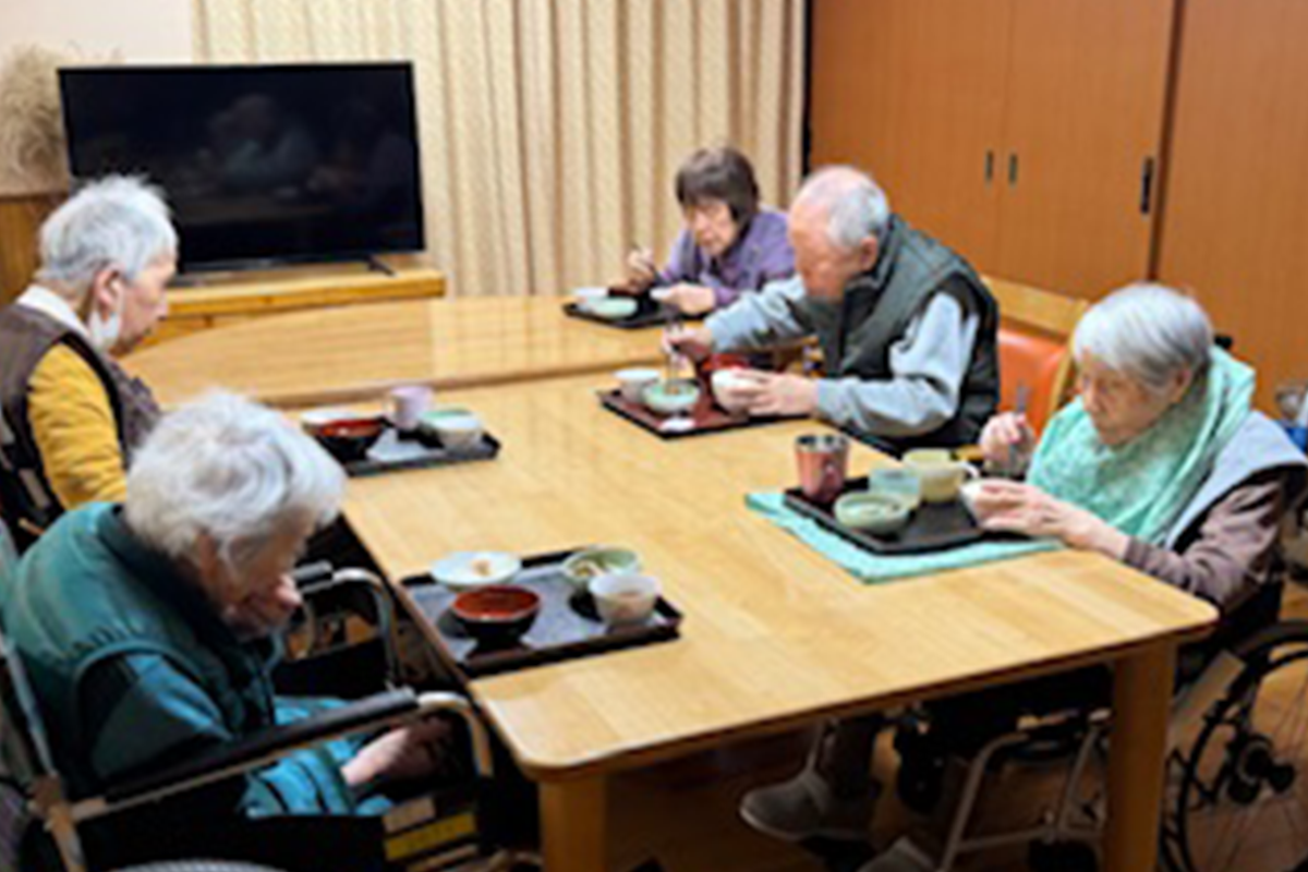栄養士が考えた献立をもとに、職員が心を込めて手作りしています。ご利用者さまも一緒に調理を楽しみながら、笑顔が広がる食卓に。おいしいと好評の食事は、健康状態や嚥下に合わせて丁寧にお作りしています。