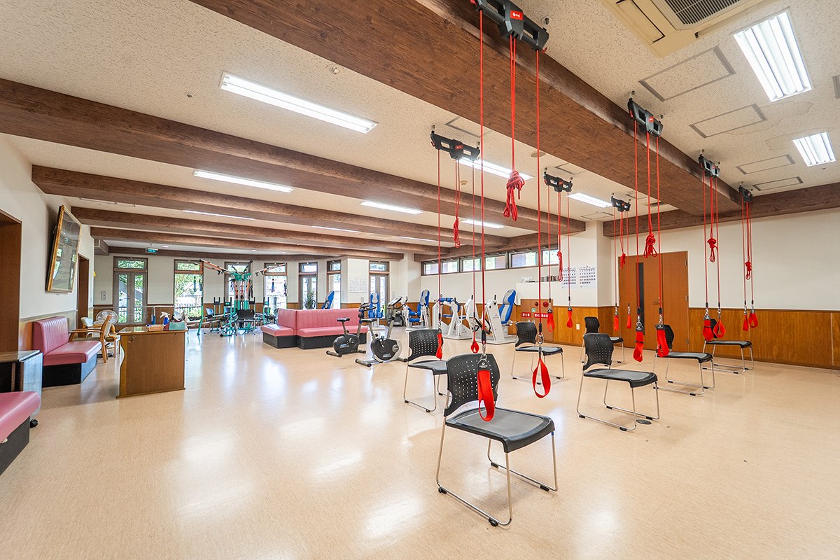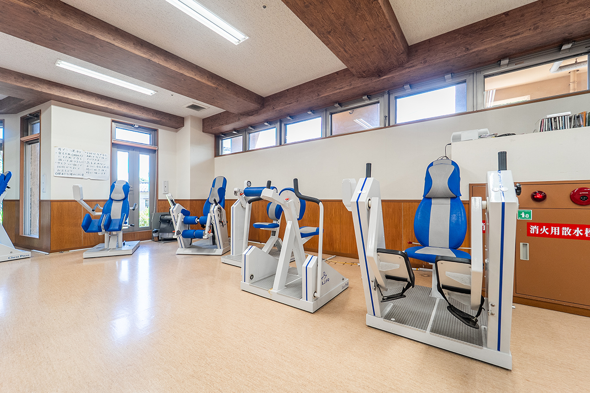 レッドコードやボディスパイダーをはじめとする多彩なリハビリ機器を完備し、充実した機能訓練を行っています。ご利用者さまお一人おひとりの希望や体力に合わせて、無理なく続けられるプログラムを提供。可能な限りご自身で取り組んでいただくことで、自立支援を促進し、生活の重度化を防ぐ取り組みを大切にしています。