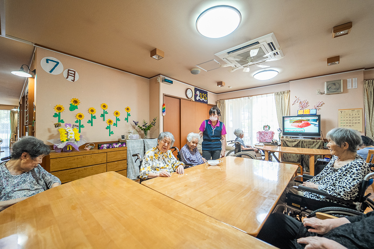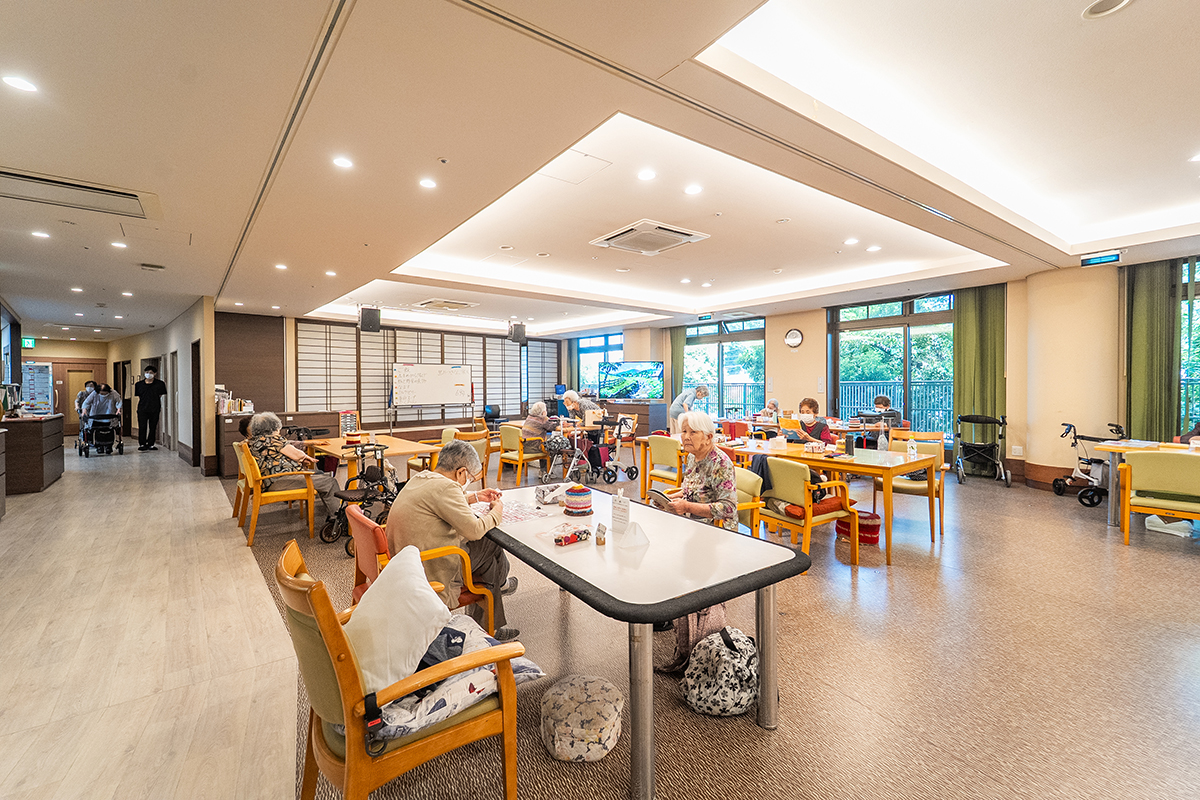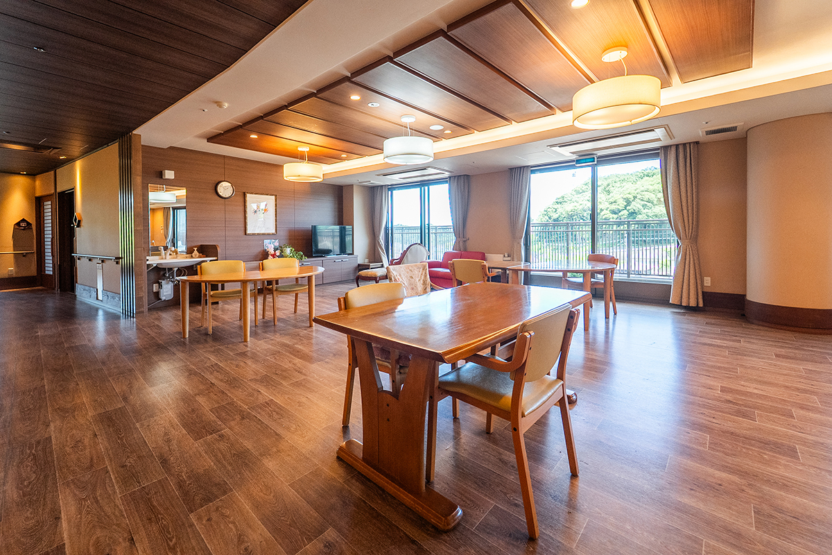 地域を一望できる広々とした空間で、仲間との交流も大切にしながら、日々の生活の自信や充実感をサポート。経験豊富なスタッフが一人ひとりのペースに合わせて丁寧にお手伝いします。