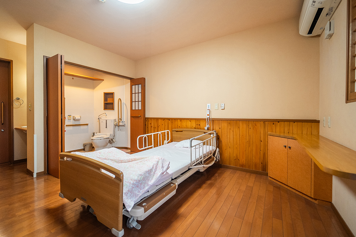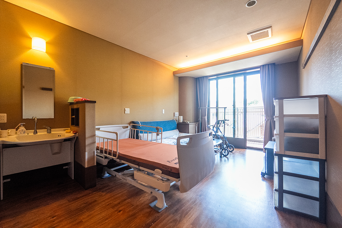 居室は洗面台・トイレ・エアコンを完備、プライバシーを大切にした全室個室。ベッドセンサーで心拍・呼吸・眠りの状態を把握でき、見守りカメラも導入。安心と温もりに包まれながら、快適で安全な暮らしをお届けできます。ご自宅の家具を持ち込み、それまでの暮らしを続けることができます。
