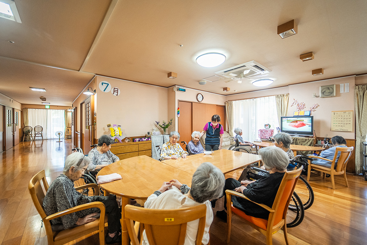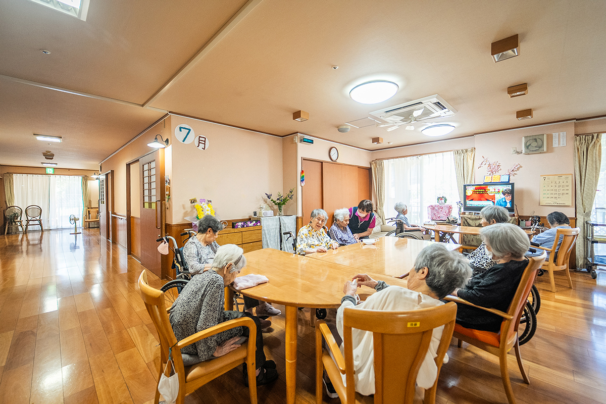 家庭的な雰囲気の中で、食事や入浴、日常生活のサポートを受けながら自分らしい生活を送ることができます。ベッドセンサーで心拍・呼吸・眠りの状態を把握でき、見守りカメラも導入。安心と温もりに包まれながら、快適で安全な暮らしをお過ごしいただけます。