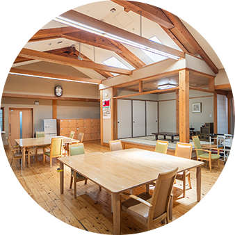 施設での食事や入浴、体操や趣味活動など、日中の生活のサポートを行います。少人数制なので、スタッフがご利用者さまの一人ひとりの変化や希望に気づきやすく、安心して過ごせます。
