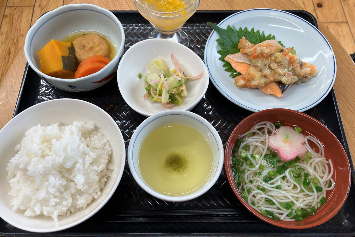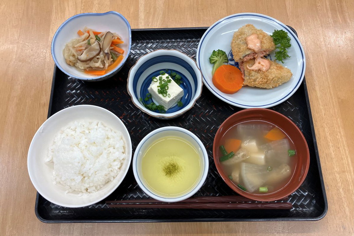 栄養士が考えた献立をもとに、職員が心を込めて手作りしています。ご利用者さまも一緒に調理を楽しみながら、笑顔が広がる食卓に。おいしいと好評の食事は、健康状態や嚥下に合わせて丁寧にお作りしています。