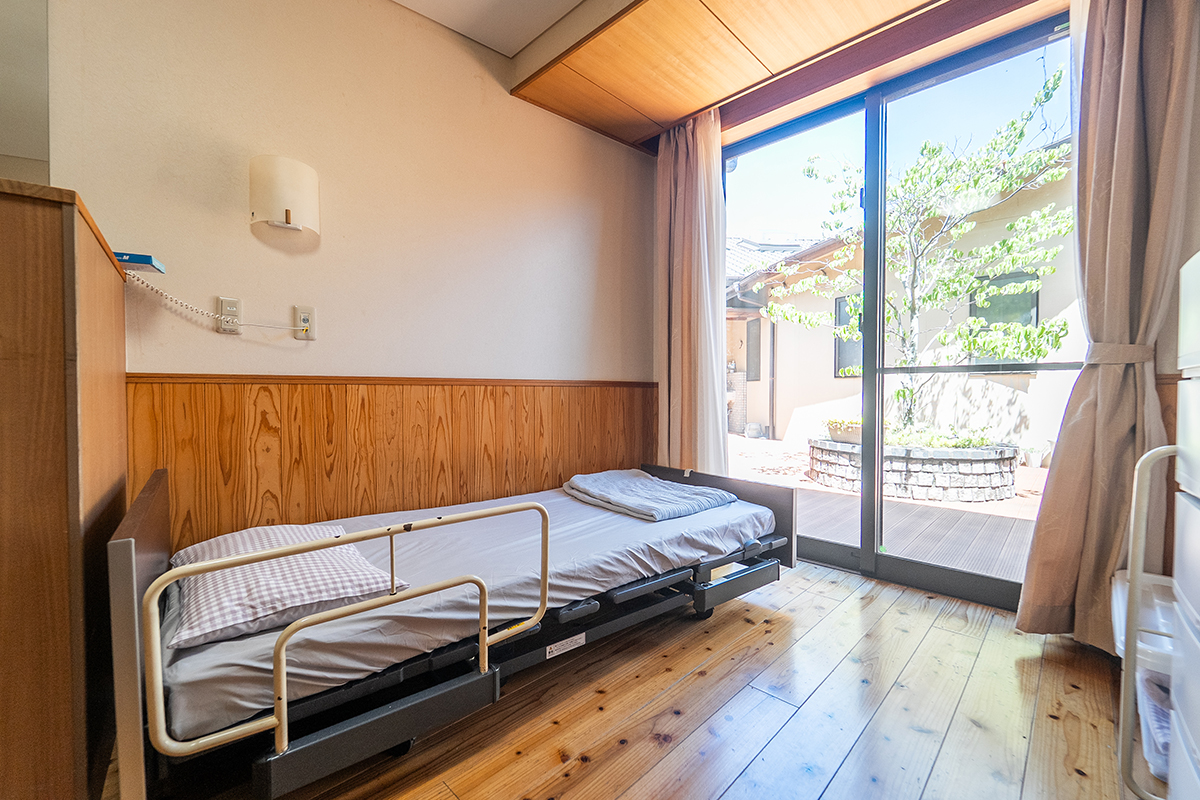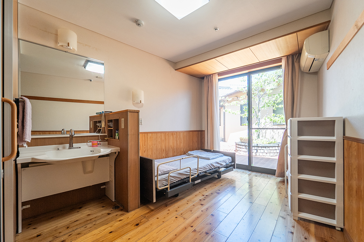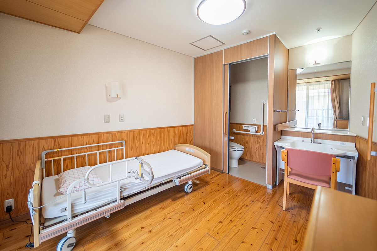居室は洗面台・トイレ・エアコンを完備、プライバシーを大切にした全室個室。ベッドセンサーで心拍・呼吸・眠りの状態を把握でき、見守りカメラも導入。安心と温もりに包まれながら、快適で安全な暮らしをお届けできます。ご自宅の家具を持ち込み、それまでの暮らしを続けることができます。