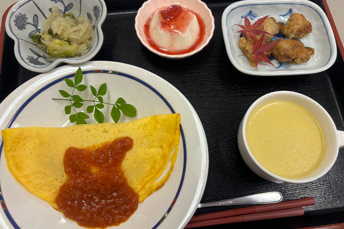 当施設では、専任の栄養士が献立を作成し、毎日の健康を支える栄養バランスの取れたお食事を提供しています。旬の食材を問い入れながら、味・彩り・食べやすさにもこだわり、楽しみながら召し上がっていただけるよう工夫しています。