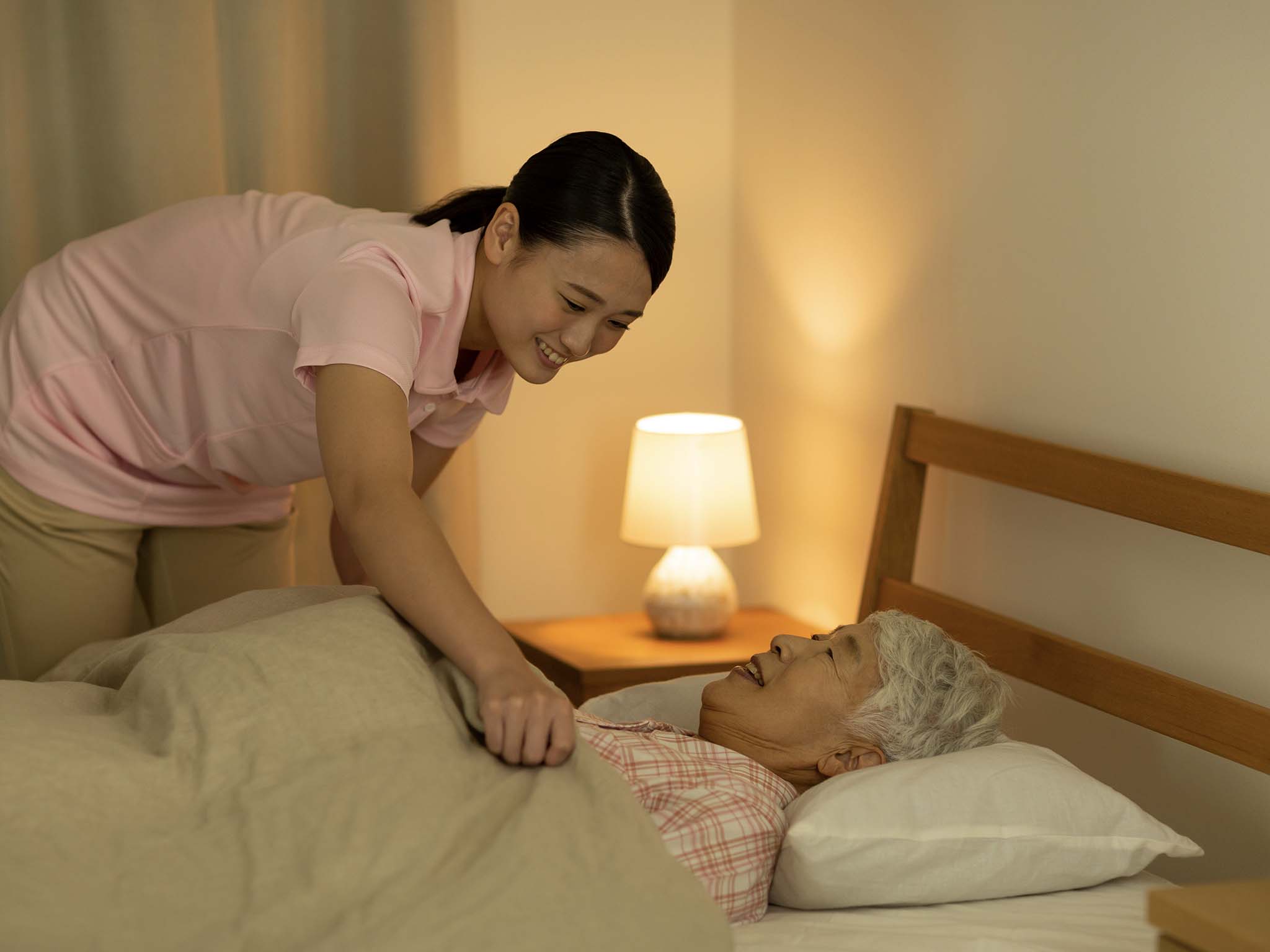 夜間の不安を軽減するコール対応夜間のトイレ介助、呼吸苦・発熱、転倒など、“困ったときはすぐにつながる”安心に繋がります。