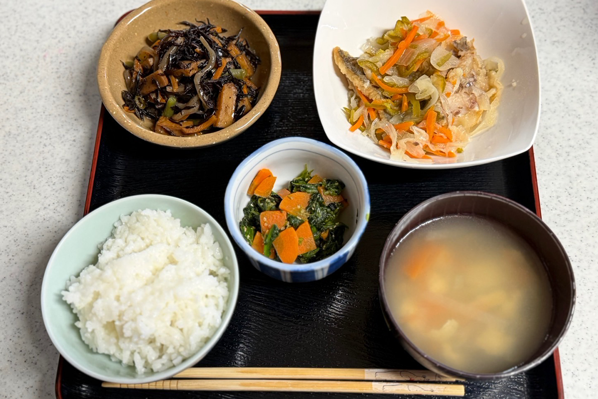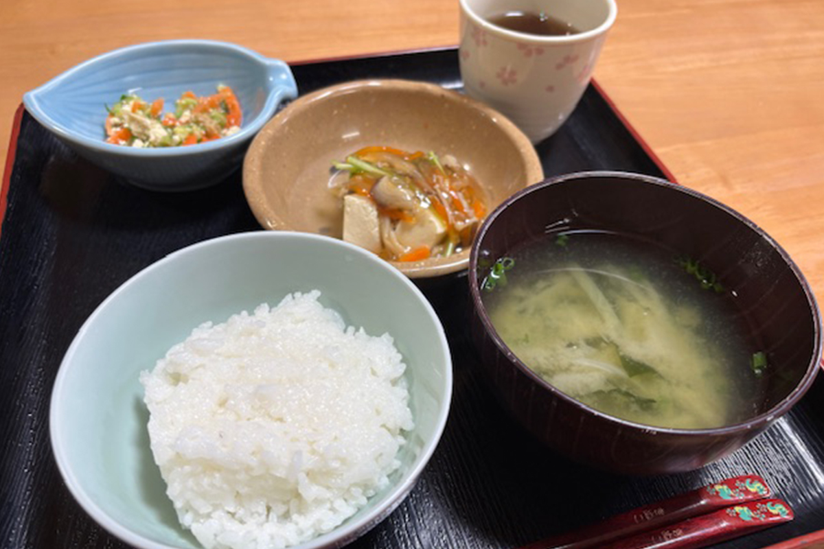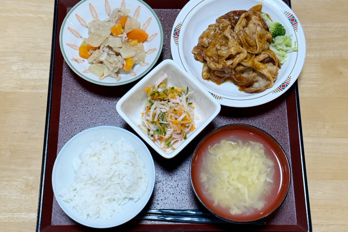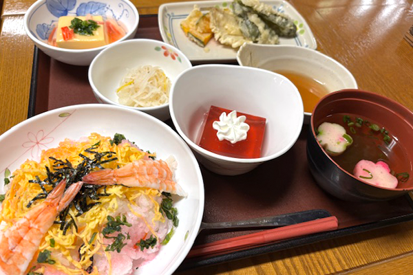 栄養士が考えた献立をもとに、職員が心を込めて手作りしています。ご利用者さまも一緒に調理を楽しみながら、笑顔が広がる食卓に。おいしいと好評の食事は、健康状態や嚥下に合わせて丁寧にお作りしています。