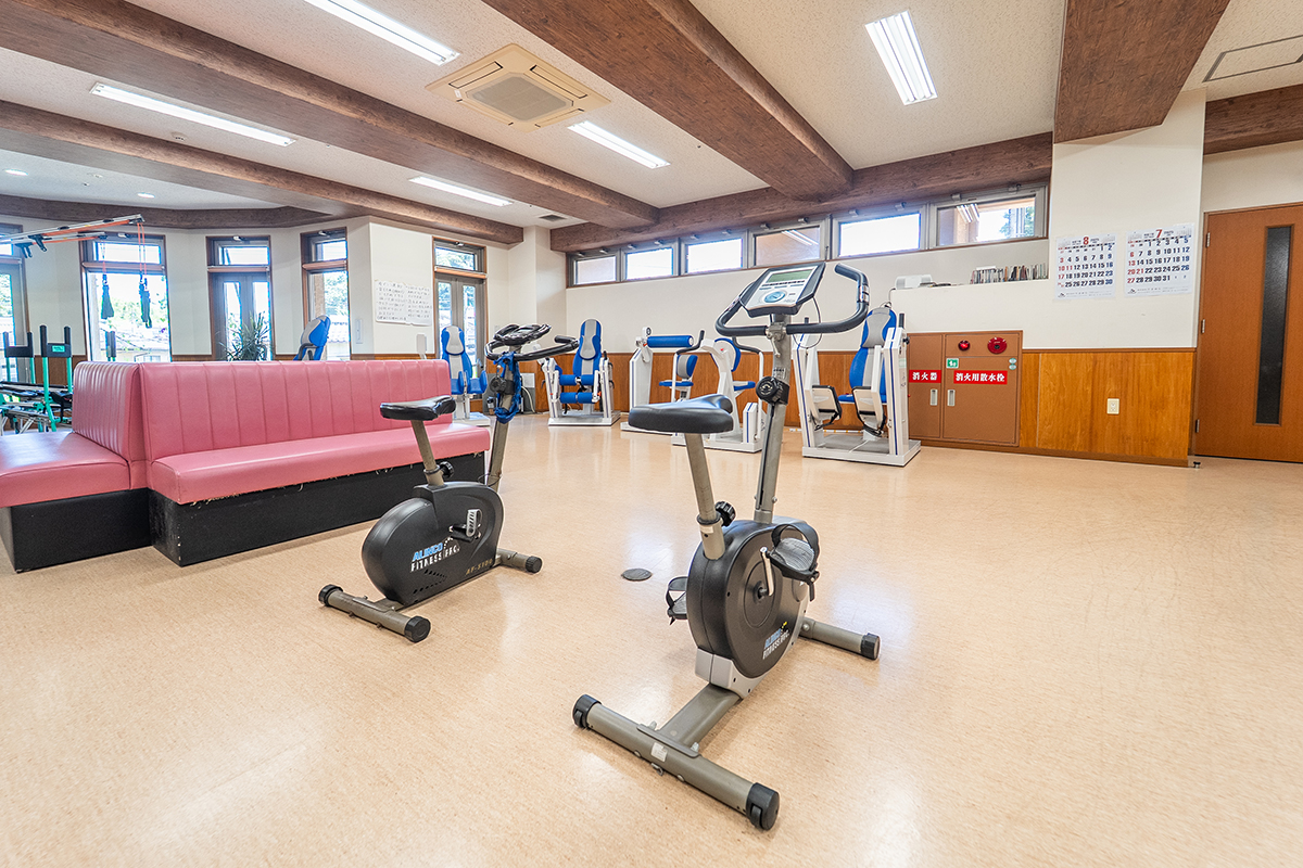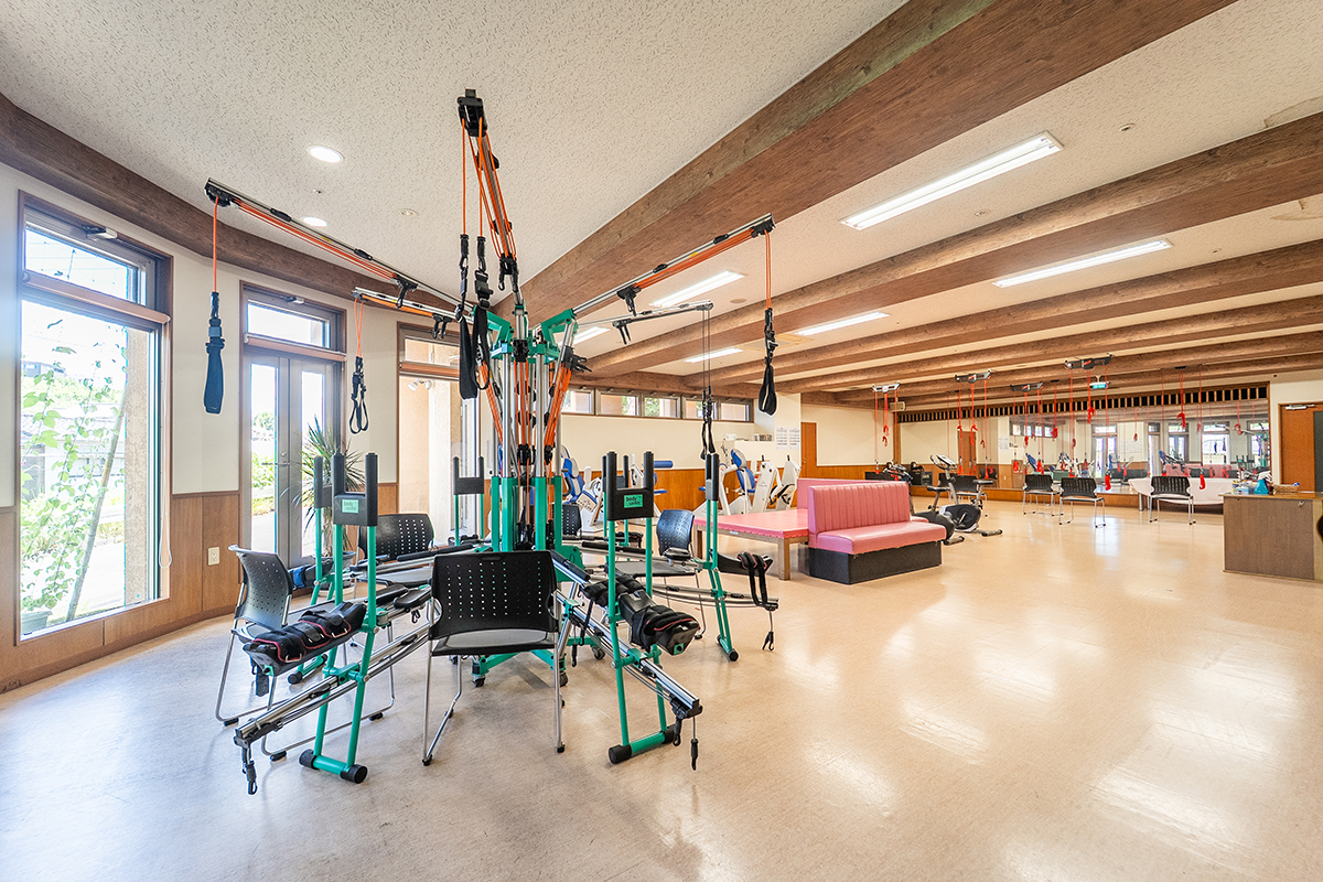 レッドコードやボディスパイダーをはじめとする多彩なリハビリ機器を完備し、充実した機能訓練を行っています。ご利用者さまお一人おひとりの希望や体力に合わせて、無理なく続けられるプログラムを提供。可能な限りご自身で取り組んでいただくことで、自立支援を促進し、生活の重度化を防ぐ取り組みを大切にしています。