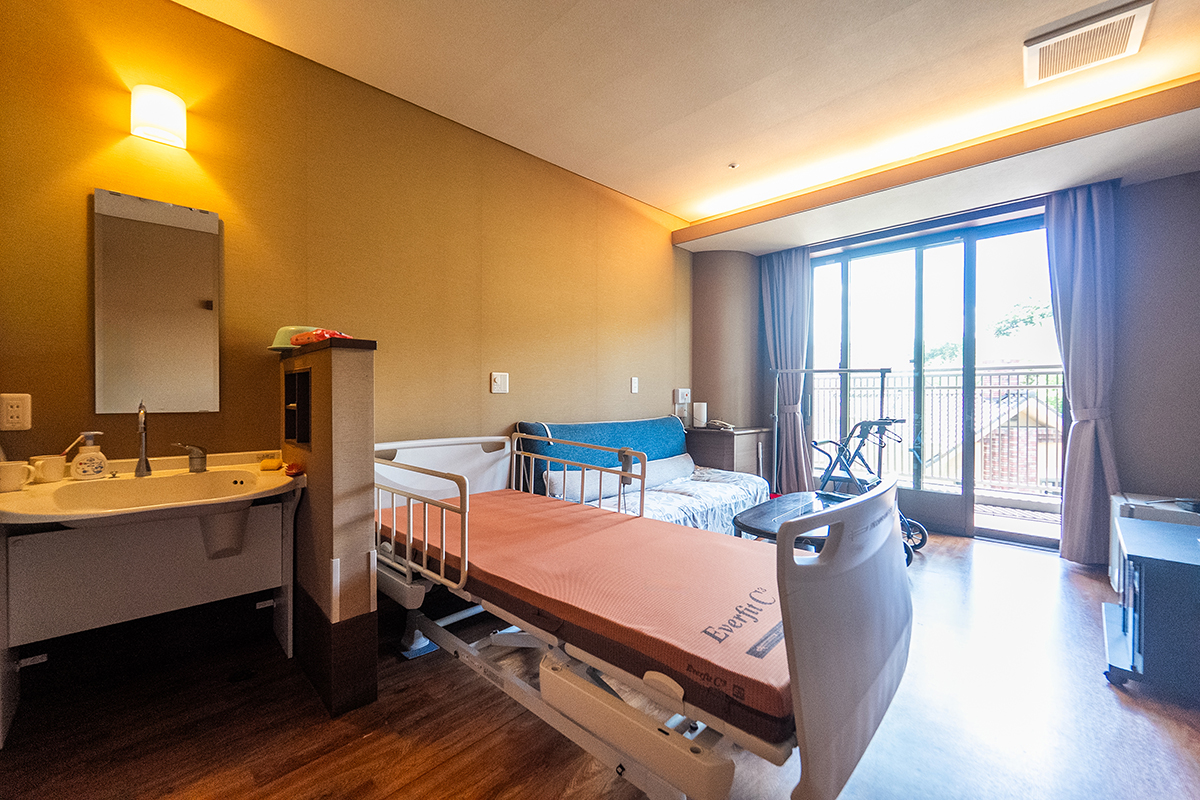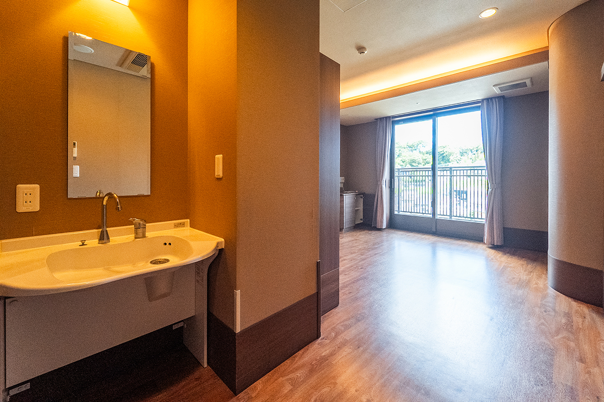 居室は洗面台・トイレ・エアコンを完備、プライバシーを大切にした全室個室。ベッドセンサーで心拍・呼吸・眠りの状態を把握でき、見守りカメラも導入。安心と温もりに包まれながら、快適で安全な暮らしをお届けできます。ご自宅の家具を持ち込み、それまでの暮らしを続けることができます。