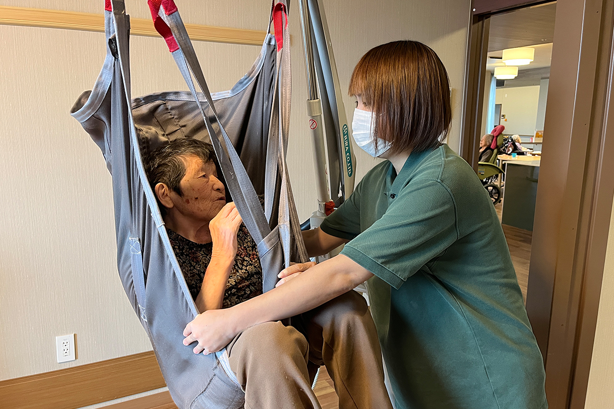 介護移乗ロボットや床走行リフトなど最先端の介護機器を導入しています。