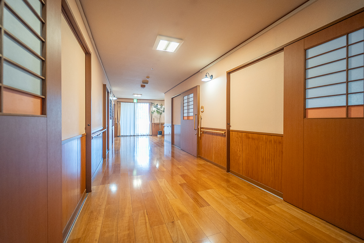 プライバシーを確保した個室で、ゆったりとお過ごしいただけます。館内は安全性に配慮した設計で、初めての方でも安心して生活を始められます。同一敷地内、または近隣のデイサービスでは、入浴や機能訓練をご利用いただけます。さらに、ヘルパーステーションを併設し、同法人内には訪問看護もあるため、必要なサービスの調整がスムーズに行えます。