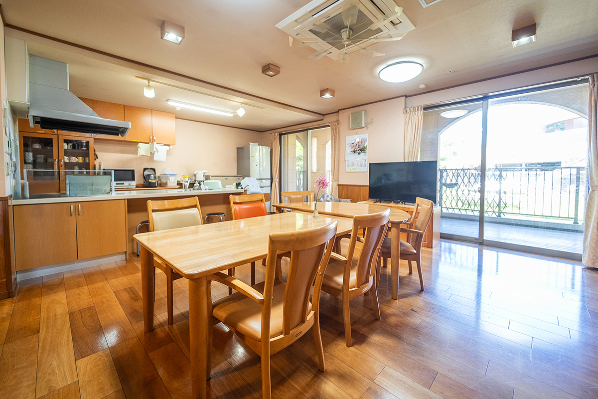 短期間でも安心して過ごせる、家庭的で温かい環境を備えたショートステイです。プライバシーが守られた居室や他ご利用者さまと過ごせる広々としたリビング。ご利用者さまもご家族も安心して笑顔の時間をお過ごしいただけます。