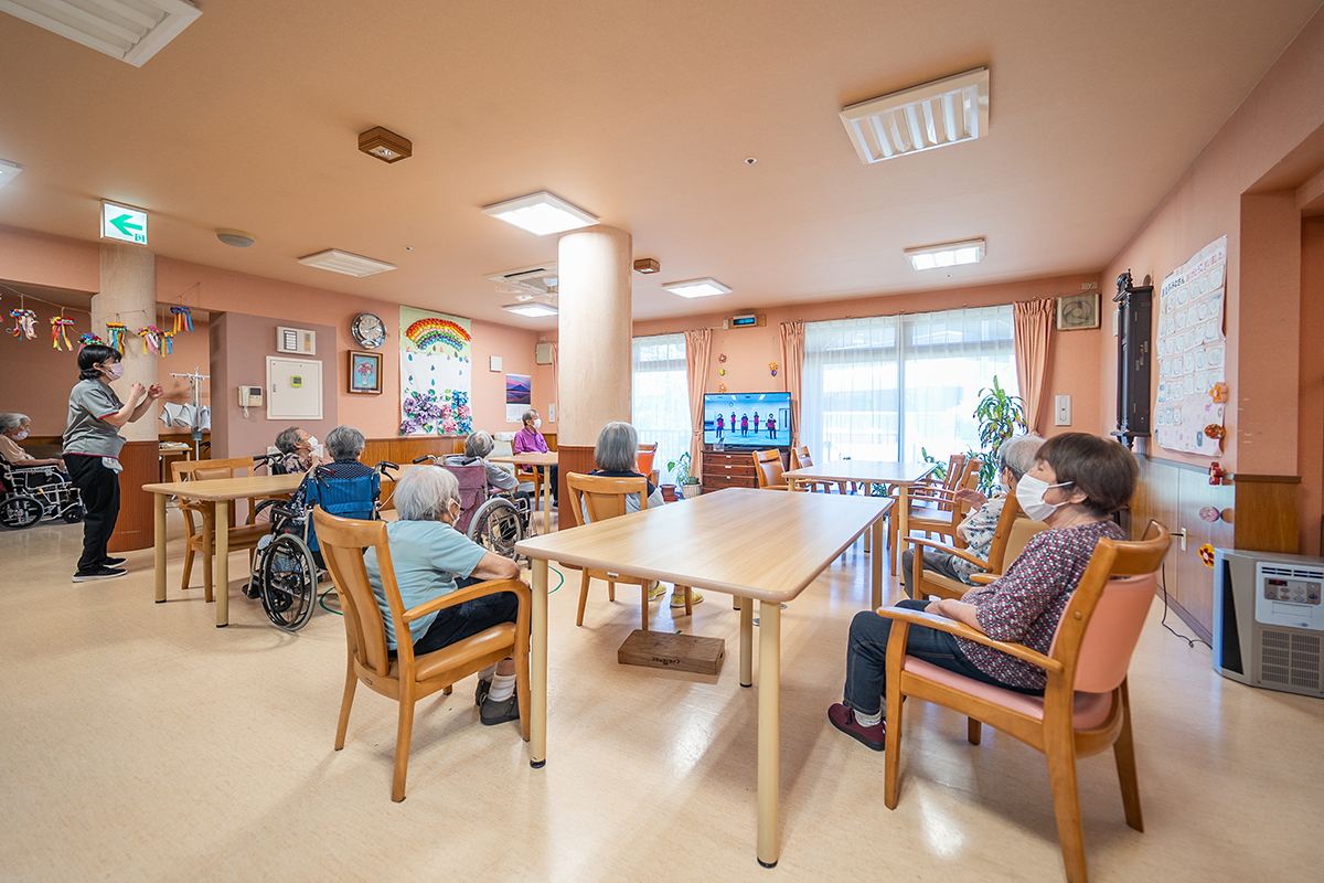 家庭的な雰囲気の中で、食事や入浴、日常生活のサポートを受けながら自分らしい生活を送ることができます。ベッドセンサーで心拍・呼吸・眠りの状態を把握でき、見守りカメラも導入。安心と温もりに包まれながら、快適で安全な暮らしをお過ごしいただけます。