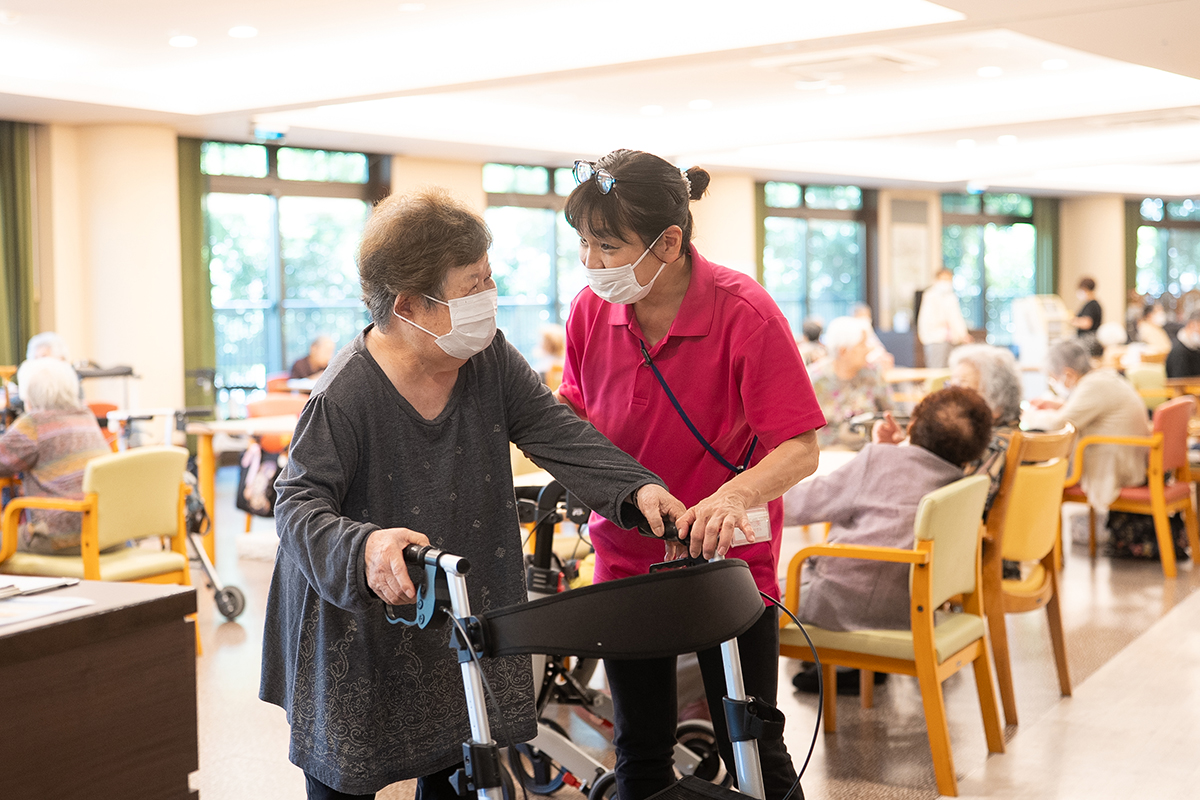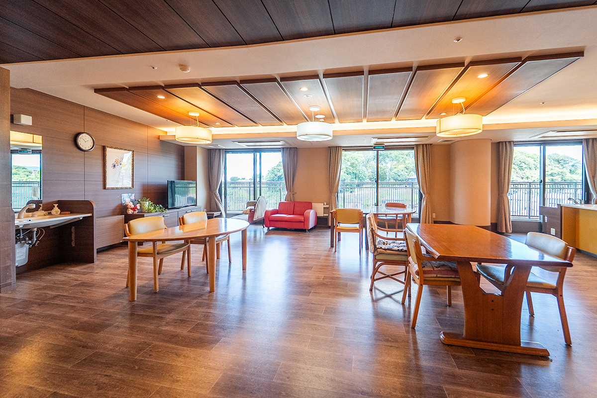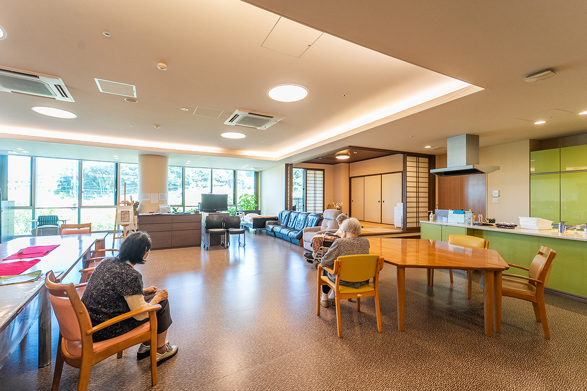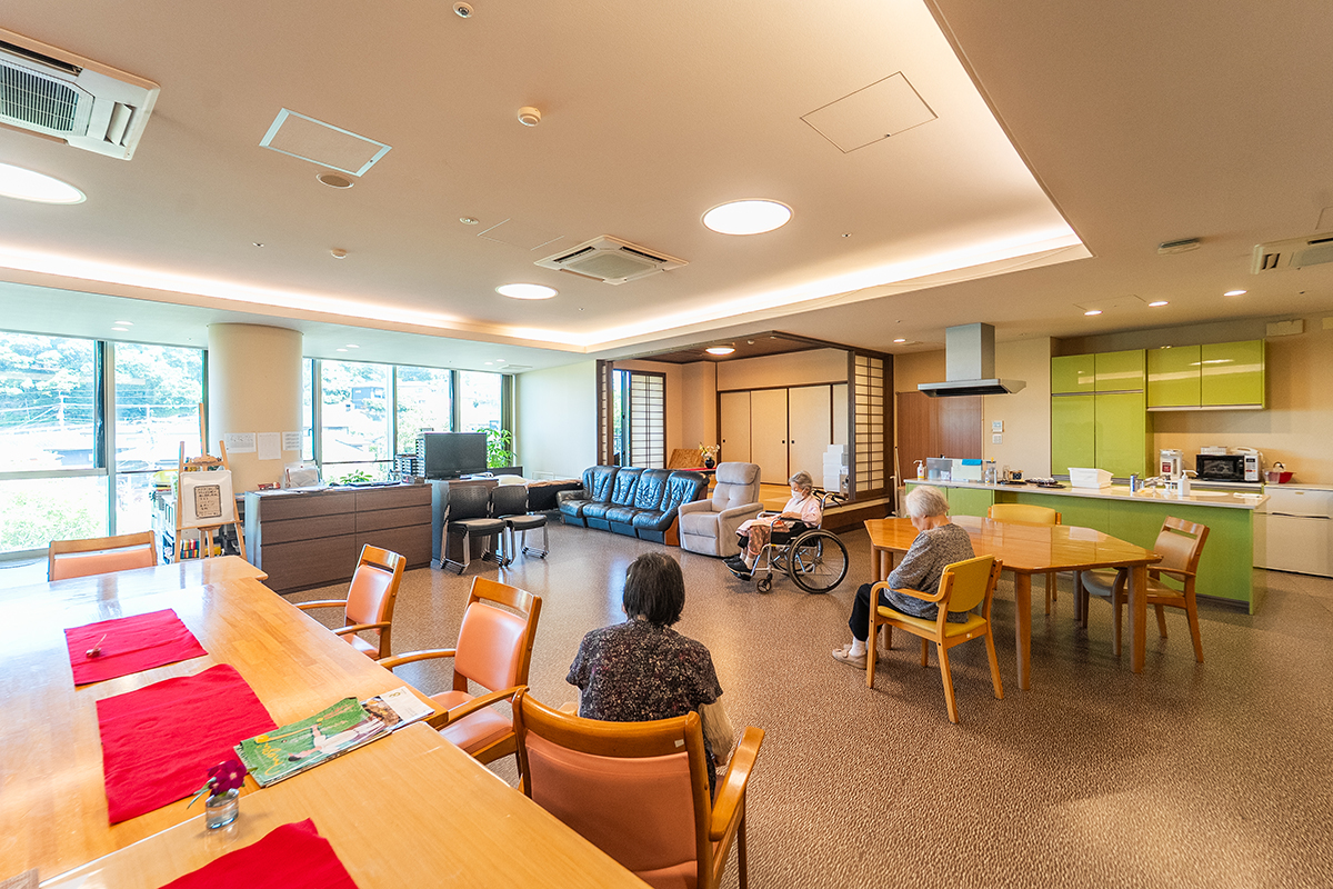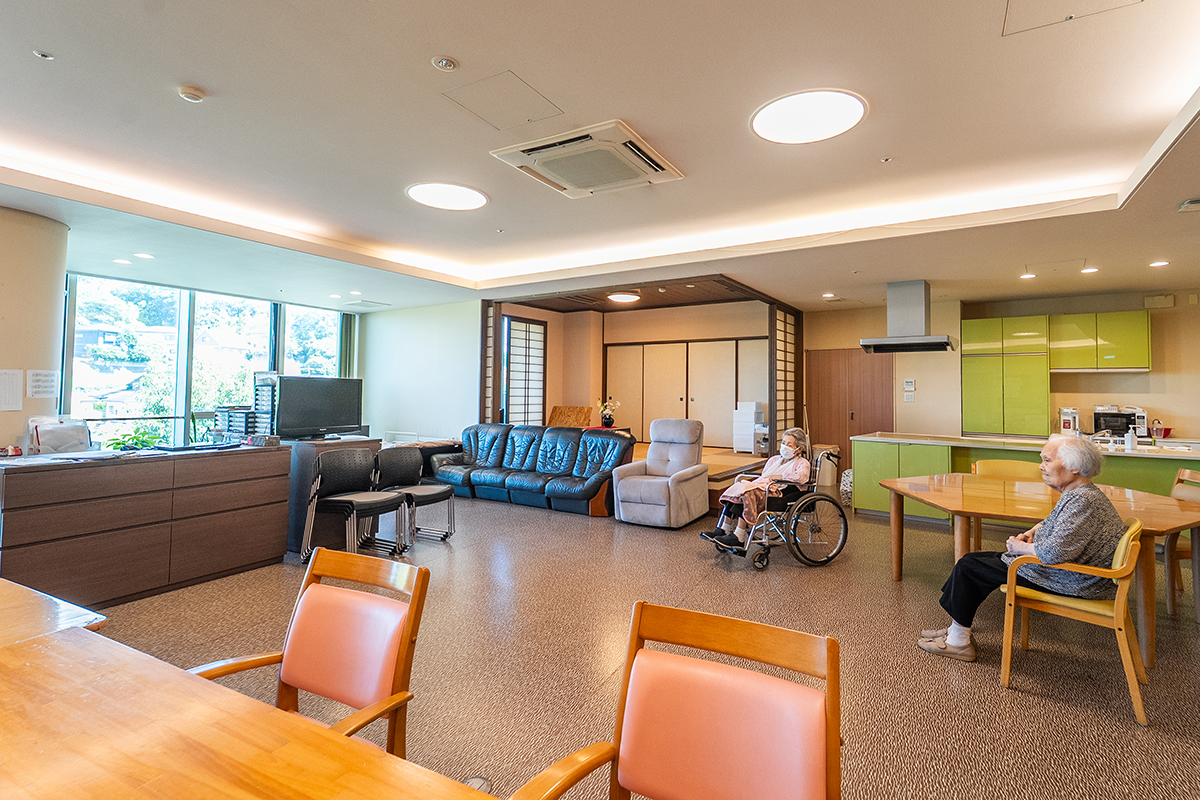 地域を一望できる広々とした空間で、仲間との交流も大切にしながら、日々の生活の自信や充実感をサポート。経験豊富なスタッフが一人ひとりのペースに合わせて丁寧にお手伝いします。