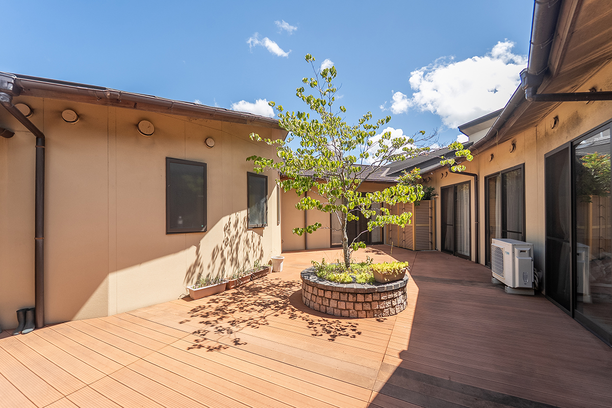 中庭があり、天気の良い日はここでレクリエーションをおこなったりと、ご利用者さまが楽しめる空間を作っています。
