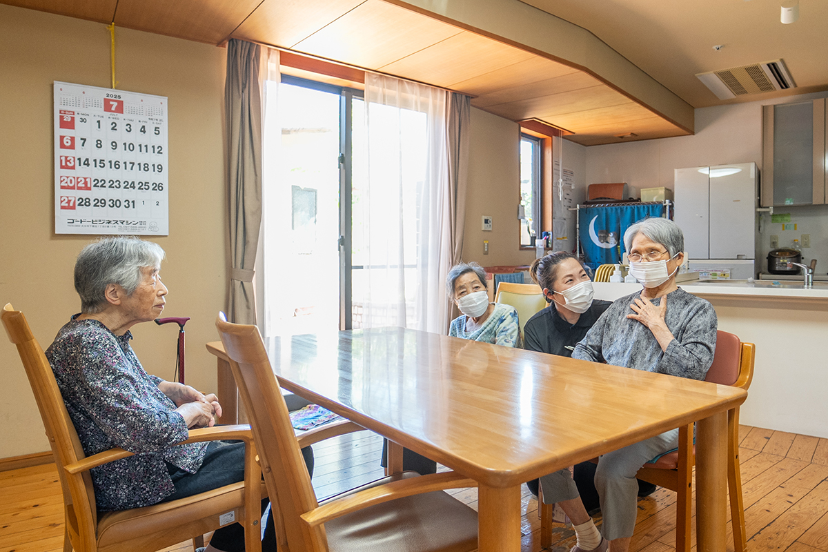 施設での食事や入浴、体操や趣味活動など、日中の生活のサポートを行います。少人数制なので、スタッフがご利用者さまの一人ひとりの変化や希望に気づきやすく、安心して過ごせます。