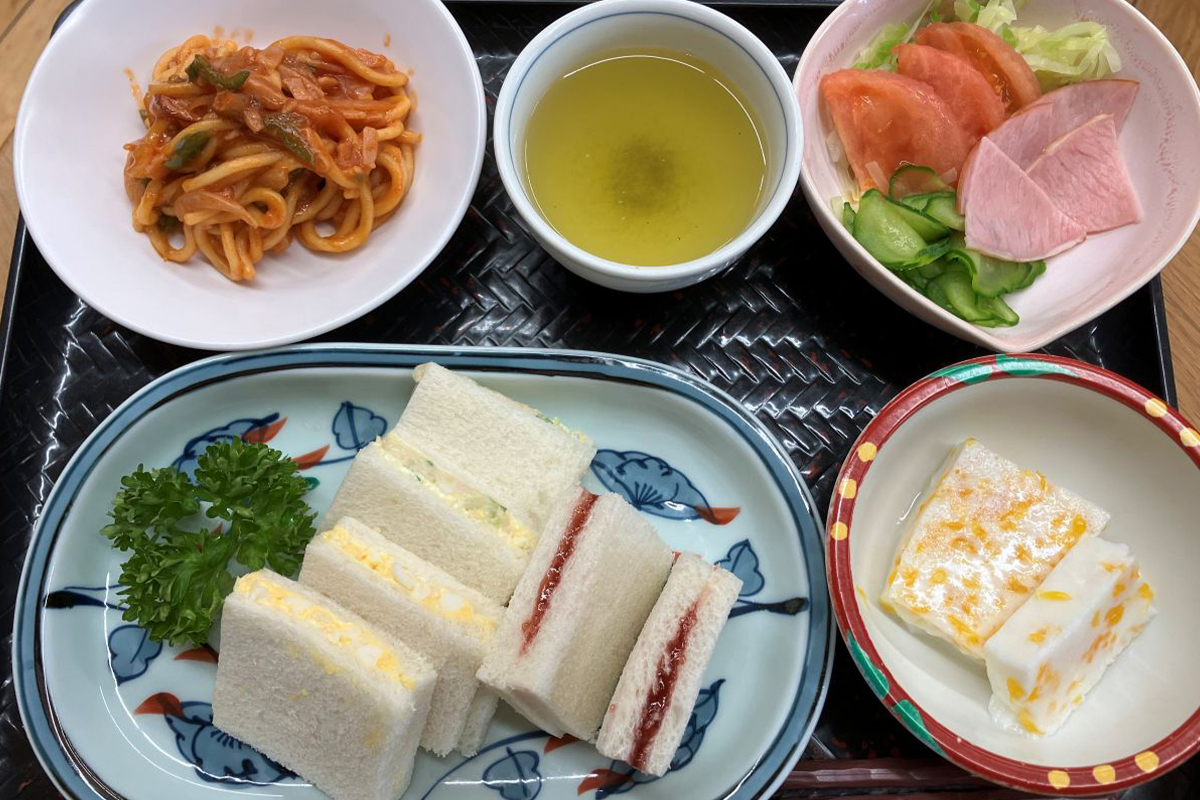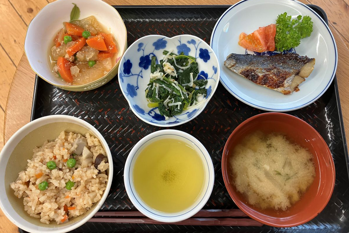 栄養士が考えた献立をもとに、職員が心を込めて手作りしています。ご利用者さまも一緒に調理を楽しみながら、笑顔が広がる食卓に。おいしいと好評の食事は、健康状態や嚥下に合わせて丁寧にお作りしています。
